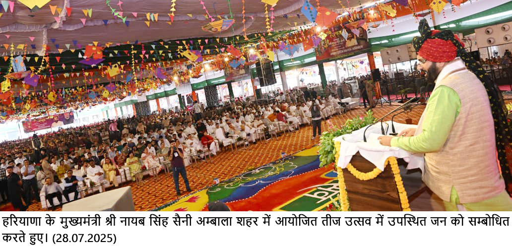 समारोह में महिला एवं बाल विकास मंत्री श्रीमती श्रुति चौधरी ने कहा कि तीज का उत्सव महिला सशक्तिकरण के लिए संकल्प लेने का अवसर है। आज हम यह प्रण लेते हैं कि हर बेटी को सम्मान, हर माँ को सुरक्षा और हर बच्चे को अवसर देना हमारी प्राथमिकता रहेगी। उन्होंने गर्व के साथ बताया कि ‘बेटी बचाओ, बेटी पढ़ाओ’ अभियान की शुरुआत स्वयं प्रधानमंत्री श्री नरेंद्र मोदी ने हरियाणा की धरती से की थी। जब 2015 में यह योजना शुरू हुई, उस समय हरियाणा में लिंगानुपात की स्थिति चिंताजनक थी। लेकिन निरंतर प्रयासों और योजनाओं के प्रभाव से अब इस असंतुलन में काफी सुधार आया है।