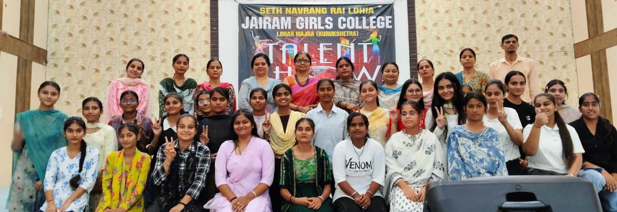 कुरुक्षेत्र, 13 सितम्बर : देशभर में संचालित श्री जयराम संस्थाओं के परमाध्यक्ष एवं श्री जयराम शिक्षण संस्थान के चेयरमैन ब्रह्मस्वरूप ब्रह्मचारी की प्रेरणा से ग्रामीण आंचल की कन्याओं को उच्च शिक्षा प्रदान करने के उद्देश्य से गतिमान सेठ नवरंग राय लोहिया जयराम कन्या महाविद्यालय में दो दिवसीय टैलेंट शो का सफल आयोजन किया गया। इस अवसर पर महाविद्यालय की छात्राओं ने गायन, वादन, नृत्य, कविता पाठ, भाषण, मोनो एक्टिंग, पेंटिंग, प्रश्नोत्तरी प्रतियोगिता,रंगोली इत्यादि विभिन्न प्रतियोगिताओं में अपनी प्रतिभा का उत्कृष्ट प्रदर्शन किया। कार्यक्रम का शुभारंभ मां सरस्वती की वंदना से हुआ। प्राचार्या डा. सुदेश रावल ने मां सरस्वती की प्रतिमा के समक्ष दीप प्रज्वलन करके पुष्प अर्पित किए। छात्राओं ने अपनी कला, प्रतिभा और रचनात्मकता से सभी को मंत्रमुग्ध कर दिया।