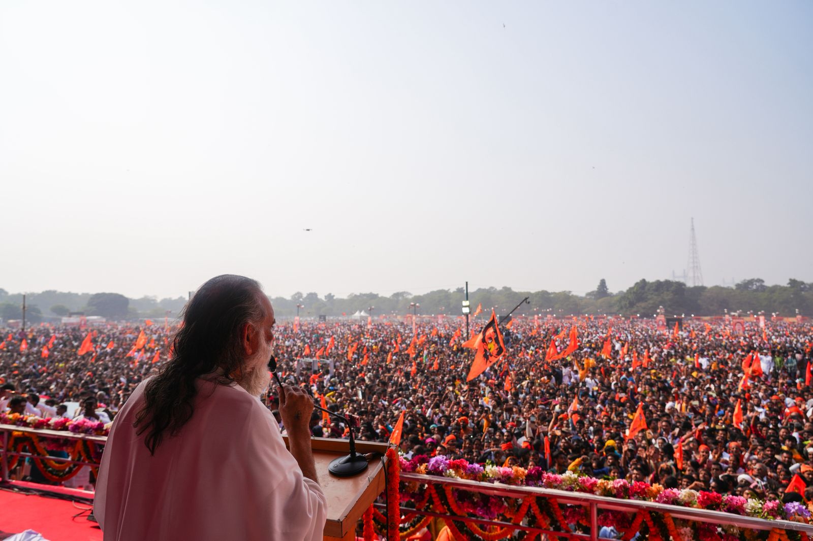 फोटो : कोलकाता के ब्रिगेड परेड ग्राउंड में लाखों लोगों को गीता पाठ करवाते गीता मनीषी स्वामी ज्ञानानंद महाराज।