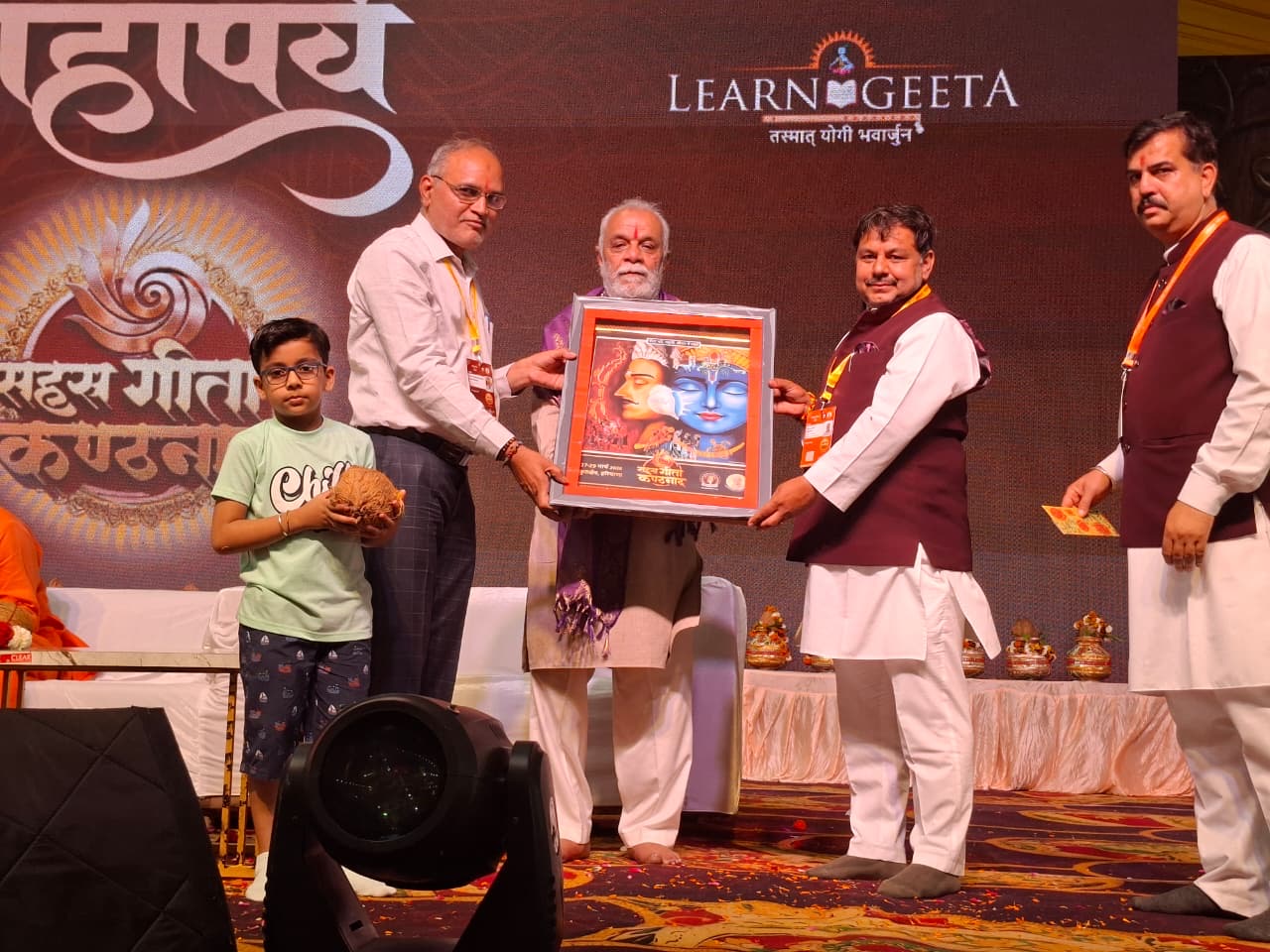 मंच पर ‘अर्जुन’ एवं ‘पार्थ’ टीम के नन्हे प्रतिभागियों ने जब व्युत्क्रम, चरण अनुसार और गणितीय गुणांक पद्धति से गीता पाठ का प्रात्यक्षिक प्रदर्शन किया, तो उपस्थित मनीषी स्तब्ध रह गए। अतिथियों ने मुक्त कंठ से प्रशंसा करते हुए कहा कि इन बालकों की तैयारी ने ‘परीक्षा लेने’ के कार्य को ‘परीक्षा देने’ से भी अधिक कठिन बना दिया है।